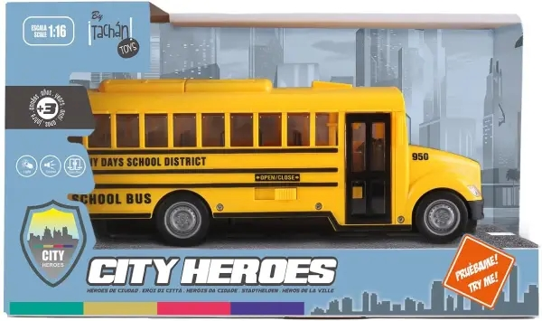 AUTOBUS ESCOLAR AMERICANO TACHAN. Disfruta jugando con este fantastico autobús Americano con luces y sonidos que imita al de los de verdad. Este juguete ofrece una experiencia de juego realista y horas de diversión.