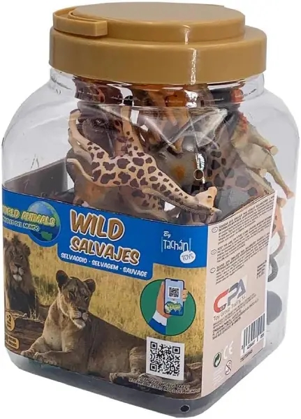 Bote con 30 animales de plástico con diferentes temáticas. Contiene además un mapa con acceso QR a toda la información acerca de los animales incluidos. Descubre cosas alucinantes de animales de todo el mundo. Fomenta a la curiosidad y el aprendizaje de la naturaleza. Recomendado para mayores de 3 años.