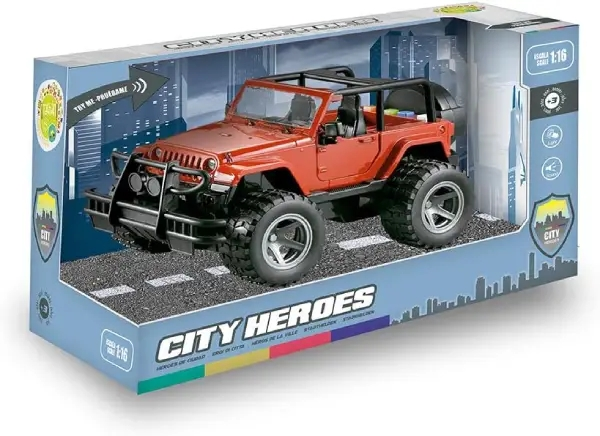 Coche tipo Jeep con 4 tipos de sonidos diferentes; sirena, claxon, encendido y marcha atrás