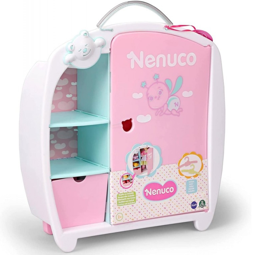 Precioso armario para guardar la ropita de Nenuco, incluye baldas, cajones y dos perchas.